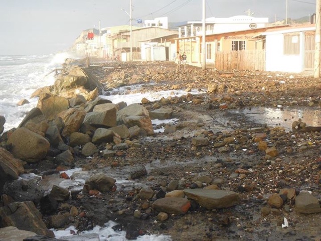 Twice a day the malecon looks like this between San Jacinto and San Clemente, the ocean finds any bit of debris it can and shoots it up from the rocks, onto the road. Not much can be done, the talk is a cement sea wall added on top of the rocks, but then there is no view of the ocean...with the debris crashing on the road all the time, the asphalt is breaking down, but what is the correct answer?